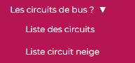 Une fois les circuits de neige créés, ils sont publiés sur le site ; il suffit de cliquer sur "Les circuits de bus ?" puis "Liste circuit neige" :